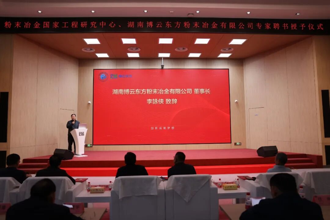 博云東方李詠俠董事長在致辭中對各位專家在企業(yè)關(guān)鍵技術(shù)發(fā)展時提供的指導與支持表示衷心的感謝。他指出,公司在高性能納米和超粗硬質(zhì)合金材料等前沿領(lǐng)域取得的突破,得益于專家們在應(yīng)用反饋與工藝優(yōu)化方面的持續(xù)賦能。此次聘任標志著公司產(chǎn)學研協(xié)同體系邁向新階段,形成覆蓋產(chǎn)業(yè)鏈的創(chuàng)新閉環(huán)。未來,公司將繼續(xù)依托中南大學、粉末冶金國家重點實驗室、粉末冶金國家工程研究中心、輕質(zhì)高強結(jié)構(gòu)材料國家級重點實驗室、中國有色金屬工業(yè)粉末冶金產(chǎn)品質(zhì)量監(jiān)督檢測中心,與專家團隊深化合作,推動硬質(zhì)合金材料在航空航天、高端裝備制造和信息產(chǎn)業(yè)等領(lǐng)域的深度應(yīng)用與產(chǎn)業(yè)升級。