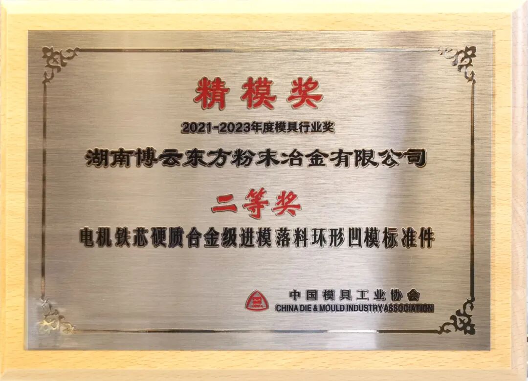 ▲博云東方“電機(jī)鐵芯硬質(zhì)合金級(jí)進(jìn)模落料環(huán)形凹模標(biāo)準(zhǔn)件”榮獲中國(guó)模具工業(yè)協(xié)會(huì)2021-2023年度模具行業(yè)技術(shù)水平能力認(rèn)定項(xiàng)目“精模獎(jiǎng)”二等獎(jiǎng)。