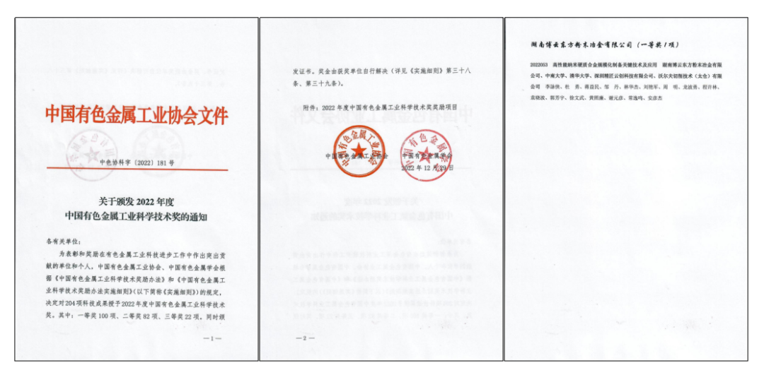 2022年12月29日,中國有色金屬工業(yè)協(xié)會、中國有色金屬學(xué)會正式公布了“2022年度中國有色金屬工業(yè)科學(xué)技術(shù)獎(jiǎng)”獲獎(jiǎng)名單,湖南博云東方粉末冶金有限公司“高性能納米硬質(zhì)合金規(guī)模化制備關(guān)鍵技術(shù)及應(yīng)用”獲得“中國有色金屬工業(yè)科學(xué)技術(shù)獎(jiǎng)一等獎(jiǎng)”。