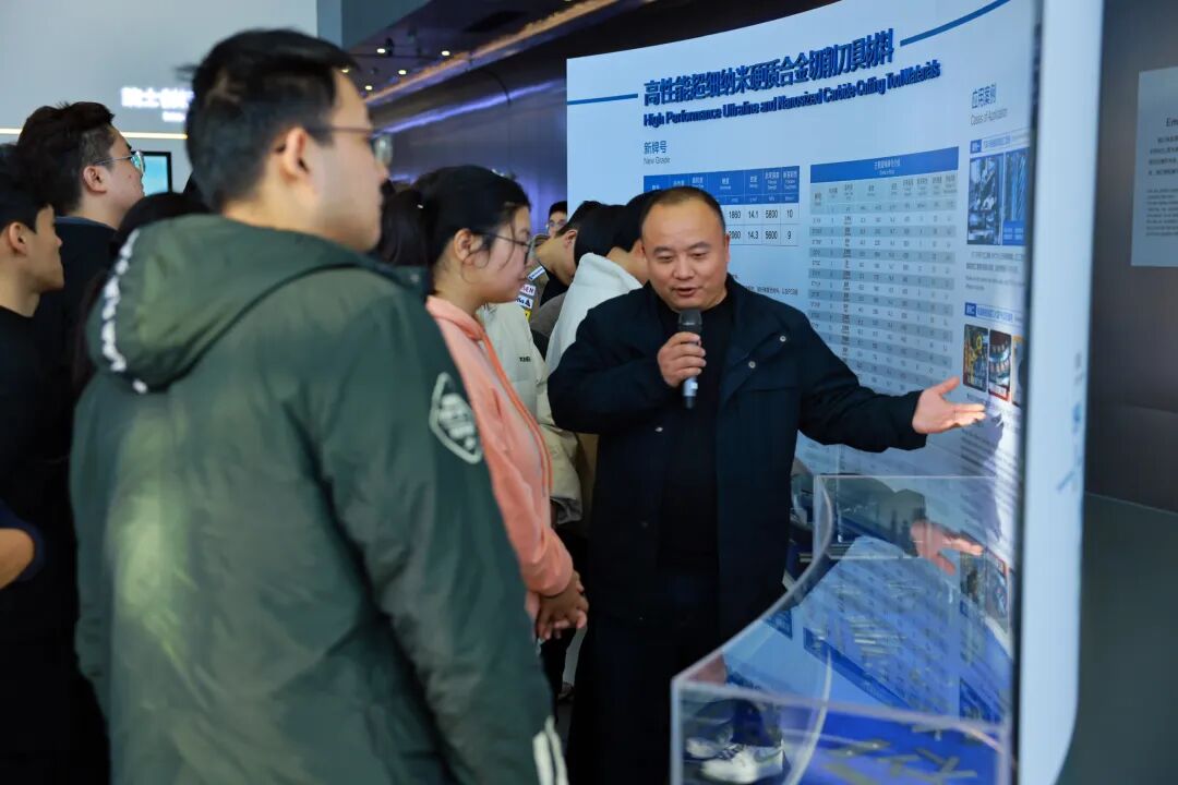 在數(shù)字展廳里,同學(xué)們激動地看到博云東方取得了令人矚目的成就,公司在高性能納米及超粗硬質(zhì)合金整體制備技術(shù)方面已處于國際領(lǐng)先水平。展示區(qū)內(nèi),中南大學(xué)與黃伯云院士創(chuàng)新團(tuán)隊的背景介紹、硬質(zhì)合金的發(fā)展歷程、企業(yè)的創(chuàng)新之路,以及高性能硬質(zhì)合金“精品”與全息視覺影院的應(yīng)用場景展示,都讓同學(xué)們深刻感受到粉末冶金專業(yè)的重要價值與獨特魅力。這一切不僅加深了他們對專業(yè)的熱愛,更激勵他們立志接過科研的“接力棒”,勇攀更高峰,續(xù)寫新的輝煌。